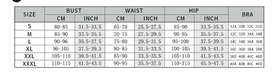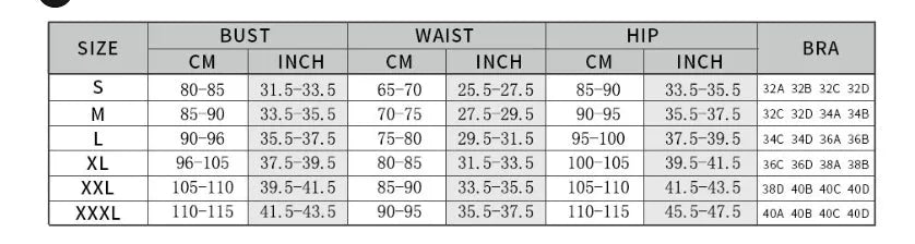 Swimwear Size Chart (S, M, L, XL, 2XL, 3XL)