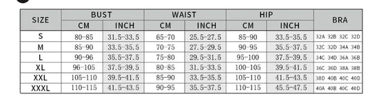 Bra Size Chart (S, M, L, XL, 2XL, 3XL)