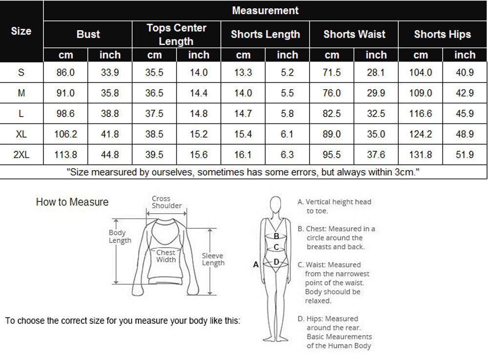 Sport Bra Size Chart (S, M, L, XL, 2XL, 3XL)
