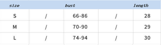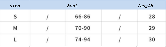 Sport Bra Size Chart (S, M, L, XL, 2XL, 3XL)