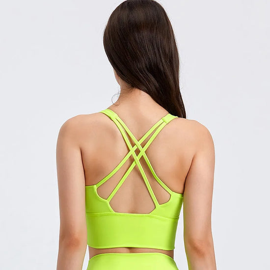 Design: Stylish criss-cross or racerback straps for enhanced support and freedom of movement
