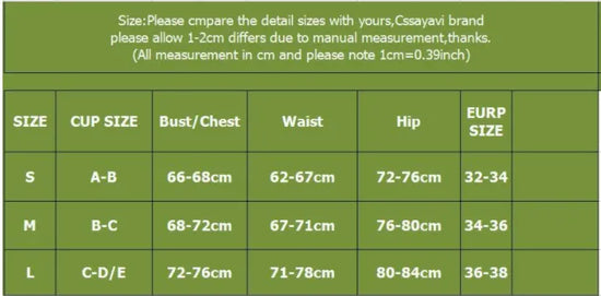 Swimwear Size Chart (S, M, L, XL, 2XL, 3XL)