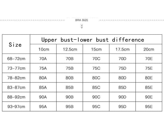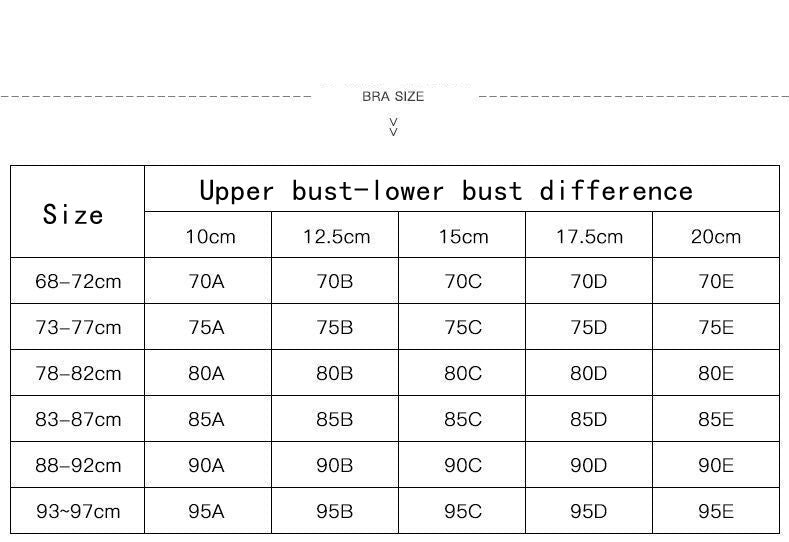 Bra Size Chart (S, M, L, XL, 2XL, 3XL)