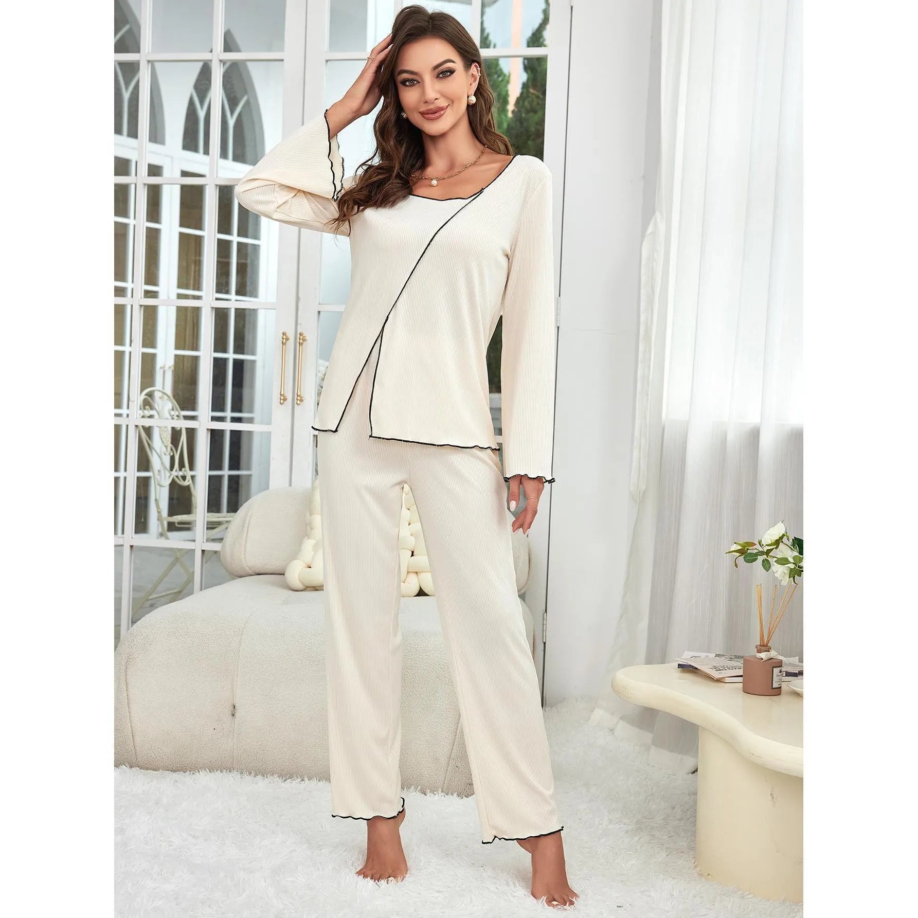 Enhance your comfort and style at home with this women's long sleeve homewear pajama set. Designed with soft, breathable fabric and a relaxed fit, the long sleeve top and matching pants provide warmth and comfort for cooler days and nights. Perfect for lounging or sleeping, this set combines elegance with everyday ease.