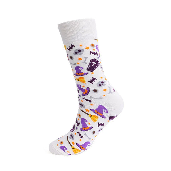 Step into spooky style with these personalized Halloween tube socks, featuring bold pumpkin and skull cartoons for a festive touch. Made from a soft, breathable cotton blend with stretch, they deliver all-day comfort. The tube length offers snug support, while custom embroidery lets you add a name or fun message—ideal for personal use or as a seasonal gift. Whether you're trick-or-treating, attending a costume party, or just embracing fall vibes, these socks add flair and fun to any outfit.