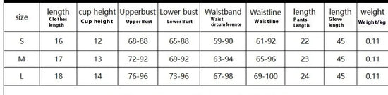 Sport Bra Size Chart (S, M, L, XL, 2XL, 3XL)
