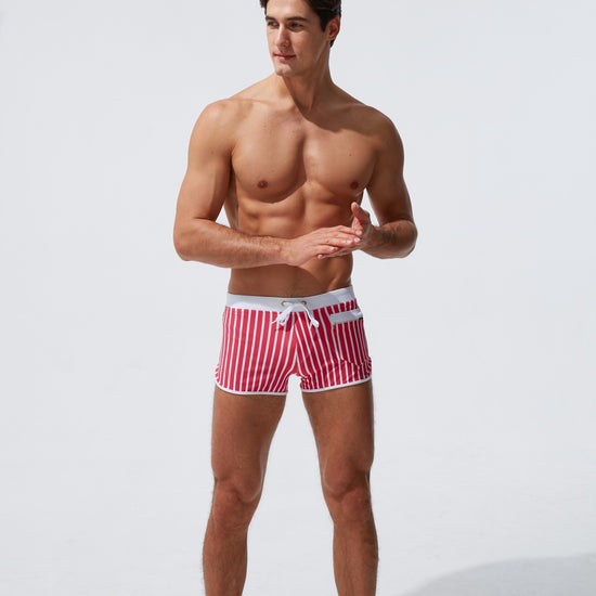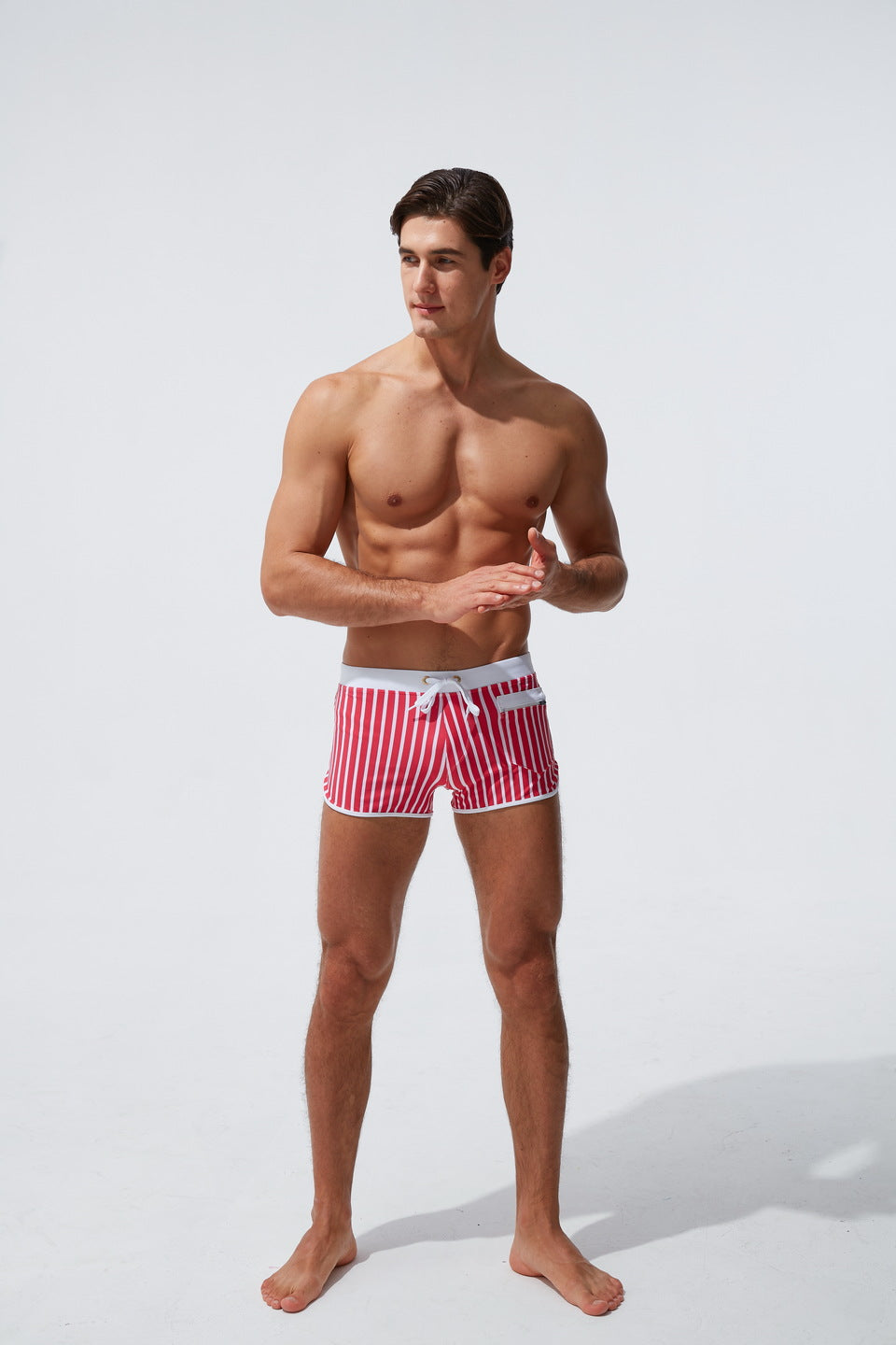 These sleek, boxer-style swim trunks combine fashion and function with a low-rise fit and a zippered front pocket, perfect for securely carrying small essentials while you enjoy the beach or pool.