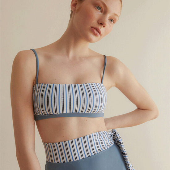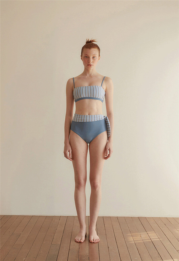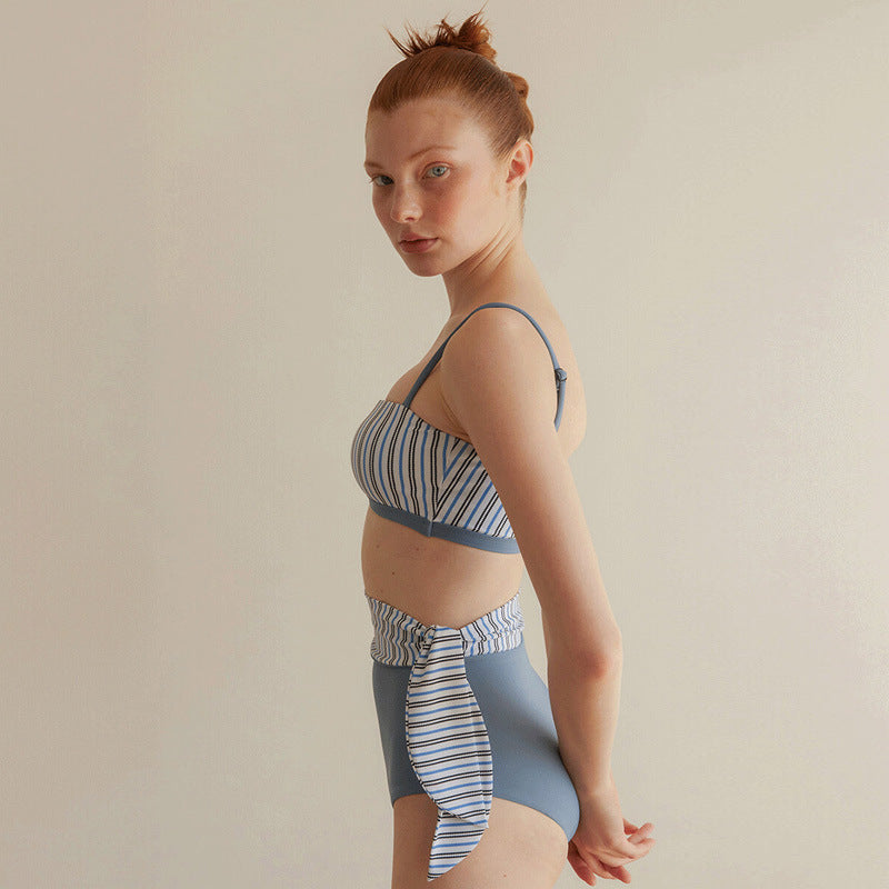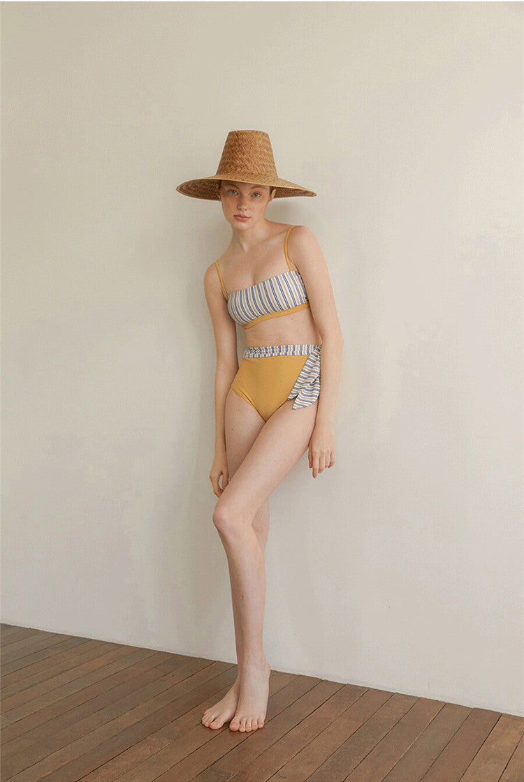 Split High Waist Striped Swimsuit