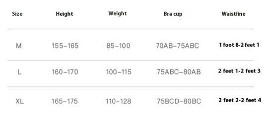 Bra Size Chart (S, M, L, XL, 2XL, 3XL)