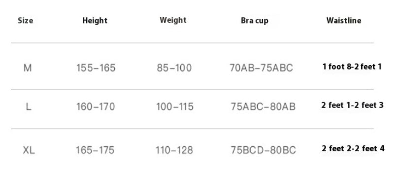 Sport Bra Size Chart (S, M, L, XL, 2XL, 3XL)