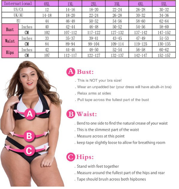 Swimwear Size Chart (S, M, L, XL, 2XL, 3XL)