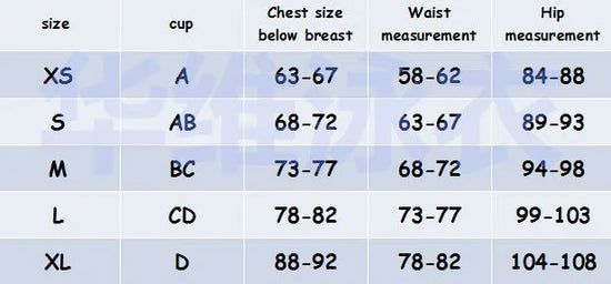 | Size | US Bust (in) | UK Bust (in) | EU Bust (cm) | AU Bust (in) | Japan Bust (cm) | Korea Bust (cm) | China Bust (cm) |