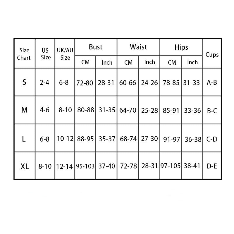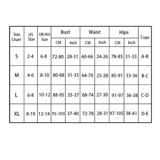 Swimwear Size Chart (S, M, L, XL, 2XL, 3XL)