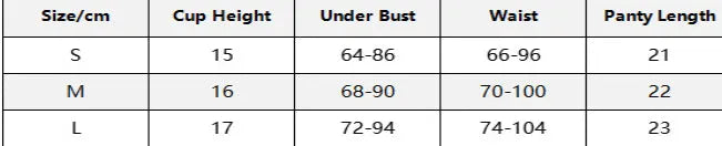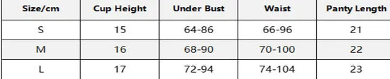 Bra Size Chart (S, M, L, XL, 2XL, 3XL)