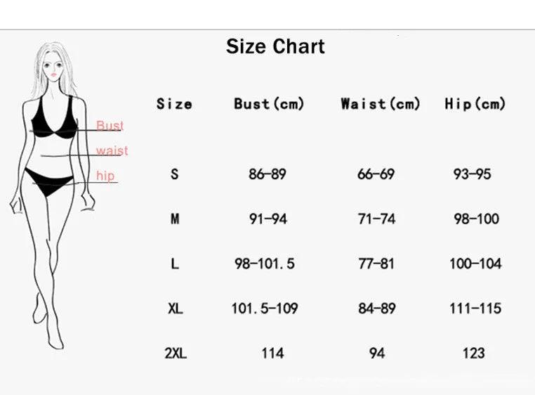 Swimwear Size Chart (S, M, L, XL, 2XL, 3XL)