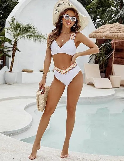 This stylish two-piece bikini features a lace-up front and split design that beautifully accentuates your curves. Made from soft, stretchy, and quick-drying fabric, it offers comfortable wear. Perfect for the beach, poolside, or tropical vacations, this bikini is a must-have for your summer wardrobe.