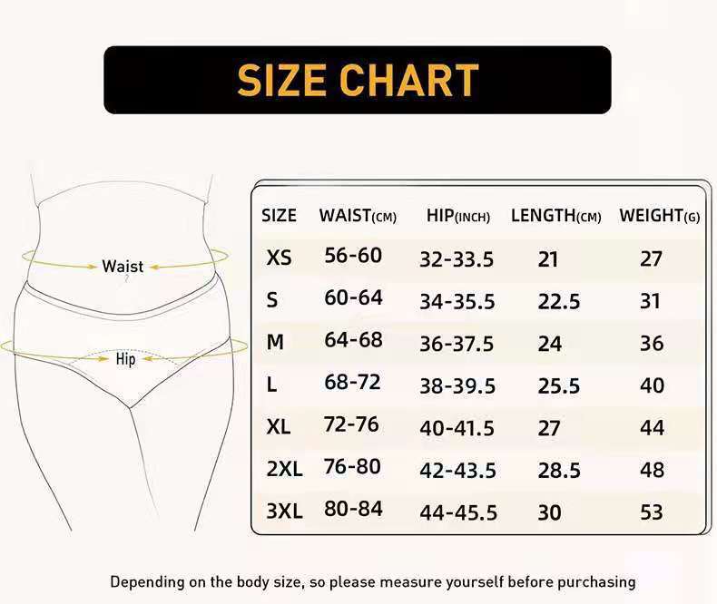 Panties Size Chart (S, M, L, XL, 2XL, 3XL)